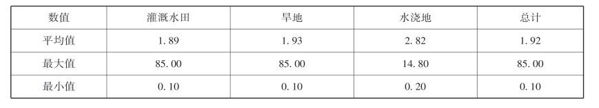 表4-31 耕地土壤有效锌分地类含量表 单位:mg/kg