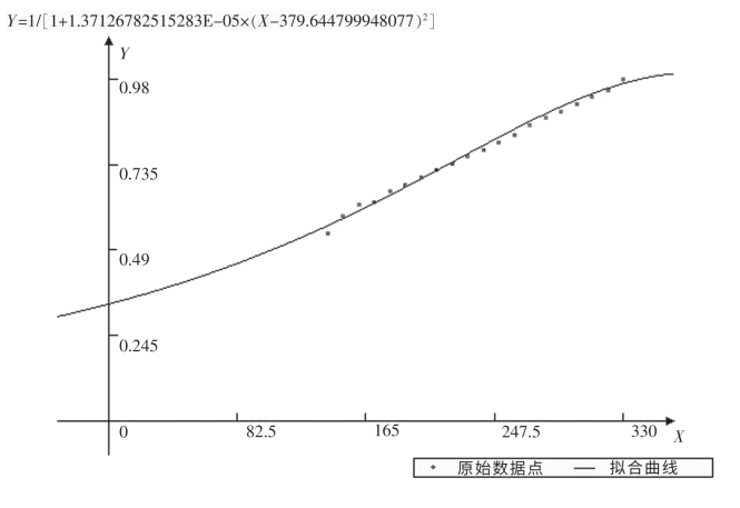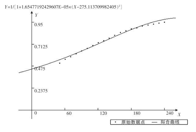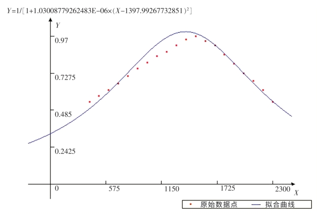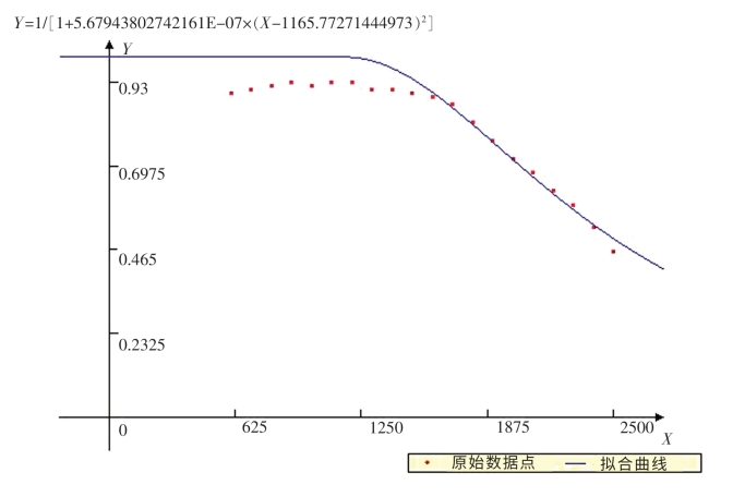 Y=1/[1+a×(u-c)2] a=0.00002 c=275.11 ut1=-452.5 ut2=275.11