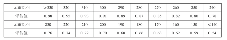 k.无霜期:反映耕地所在位置的无霜期的指标,属数值型,戒上型,量纲表示为d。