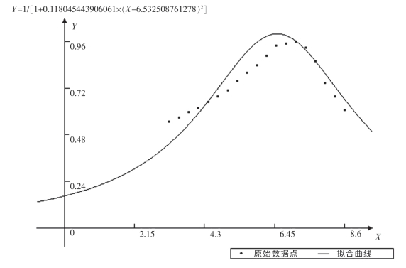 Y=1/[1+a×(u-c)2] a=0.12 c=6.53 ut1=-2.2 ut2=15.26