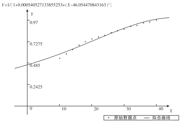 Y=1/[1+a×(u-c)2] a=0.0002 c=71.50 ut1=-139.06 ut2=71.50