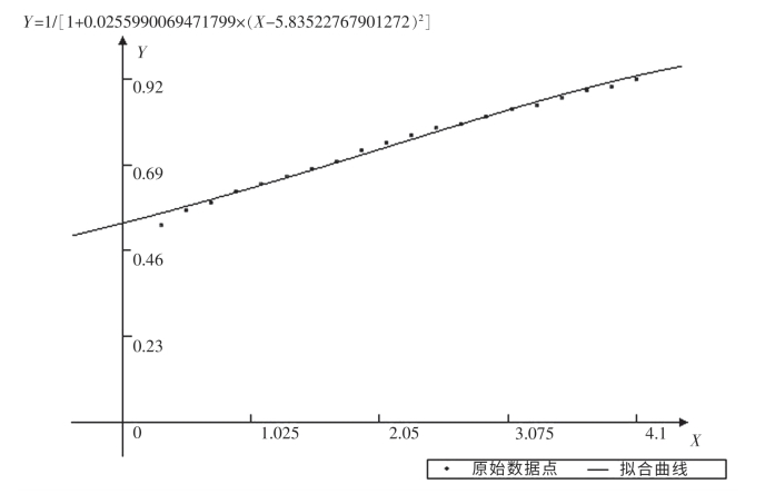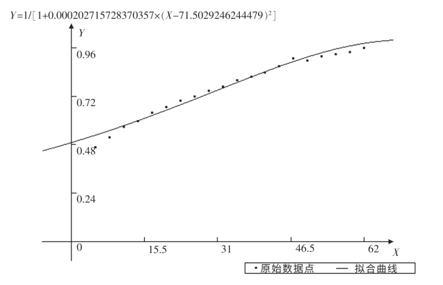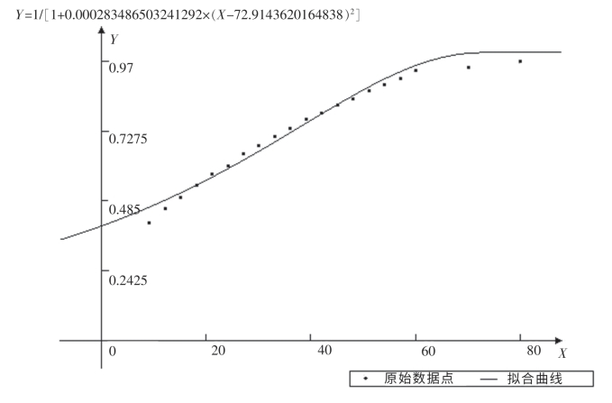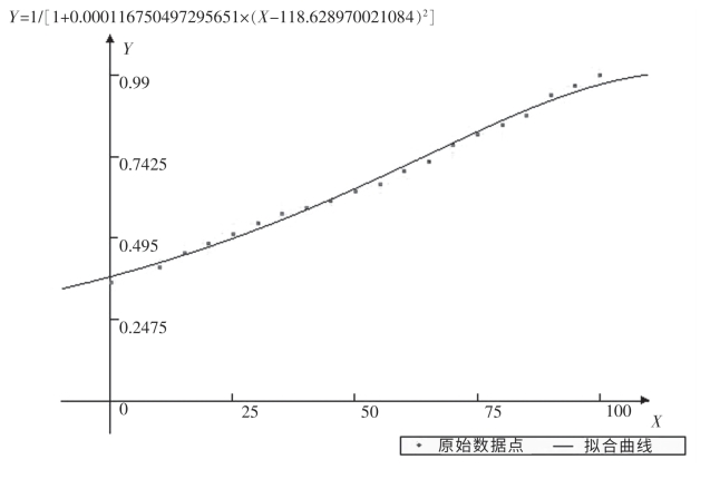 Y=1/[1+a×(u-c)2] a=0.002 c= 0.17 ut1= 0.17 ut2=70.94