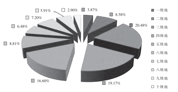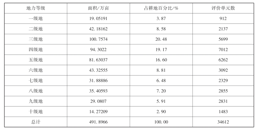 利用保山市各评价单元耕地生产力综合指数和分级方案,划分保山市耕地地力等级。
