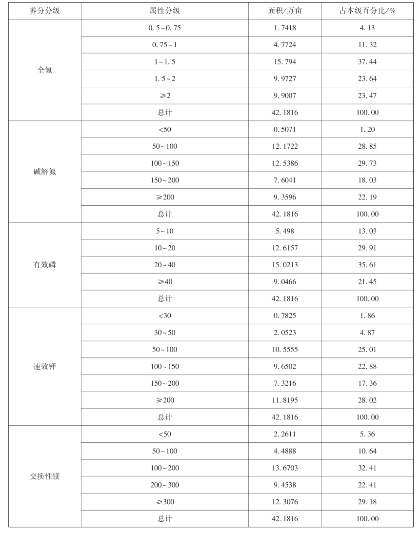 表5-22 二级地养分分级统计表