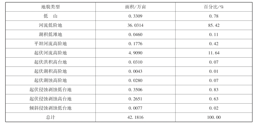 地貌类型以河流低阶地为主,面积有36.0314万亩,占本级耕地的85.42%。