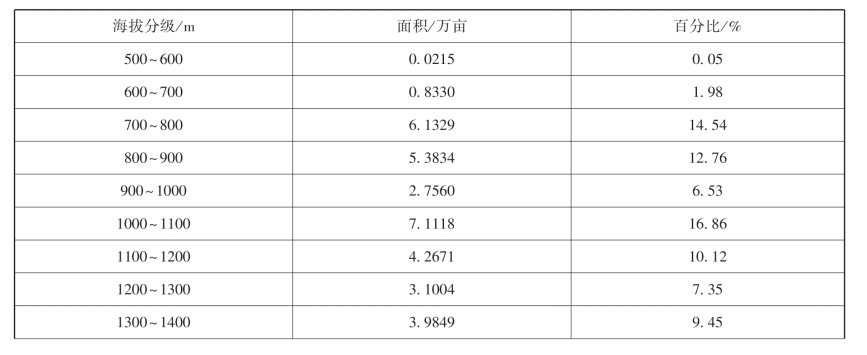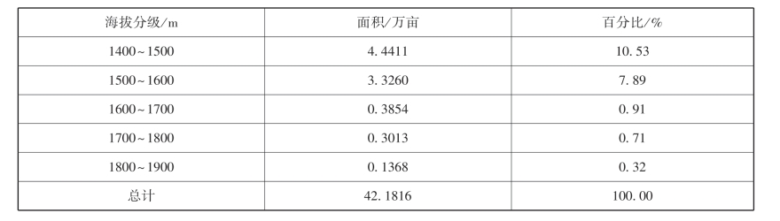表5-17 二级地海拔分级统计表