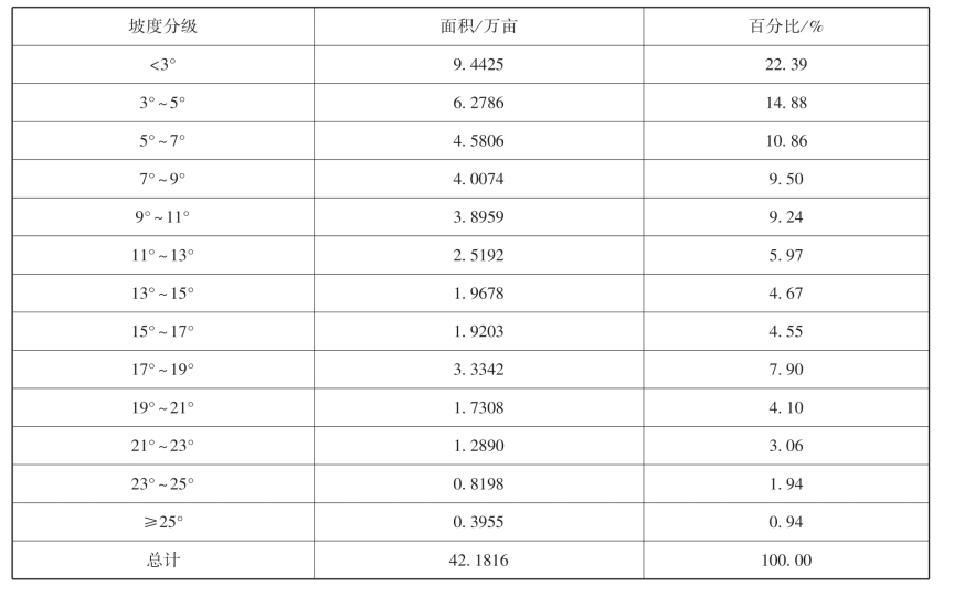 表5-16 二级地坡度分级统计表