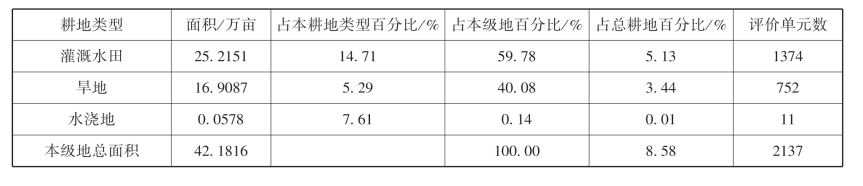 表5-13 二级地耕地评价单元数及用地类型表