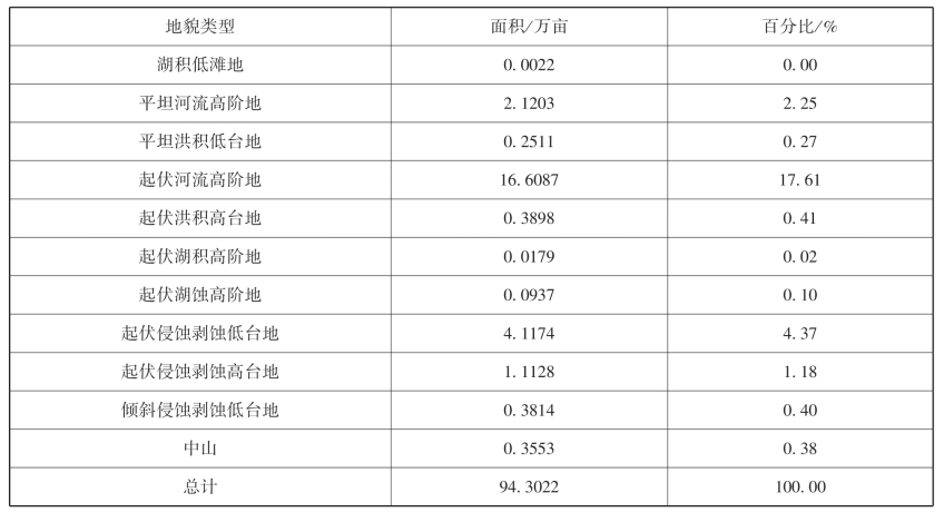 地貌类型以河流阶地为主,面积有83.4826万亩,占本级耕地的88.53%。
