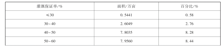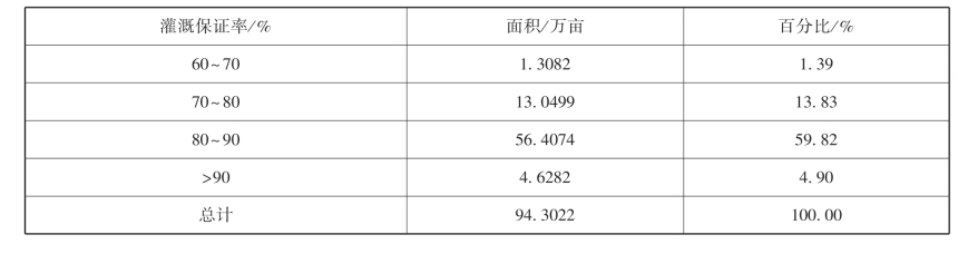 灌溉保证率80%~90%的分布面积较广,面积有56.4074万亩,占本级耕地的59.82%。
