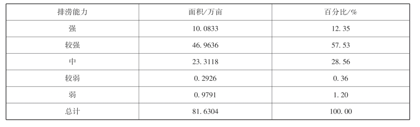 排涝能力以“较强”为主,面积有46.9636万亩,占本级耕地的57.53%。