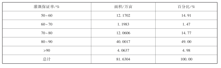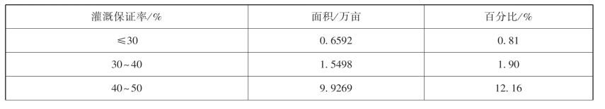 灌溉保证率为70%~90%的分布面积较广,面积有52.0623万亩,占本级耕地的63.77%。