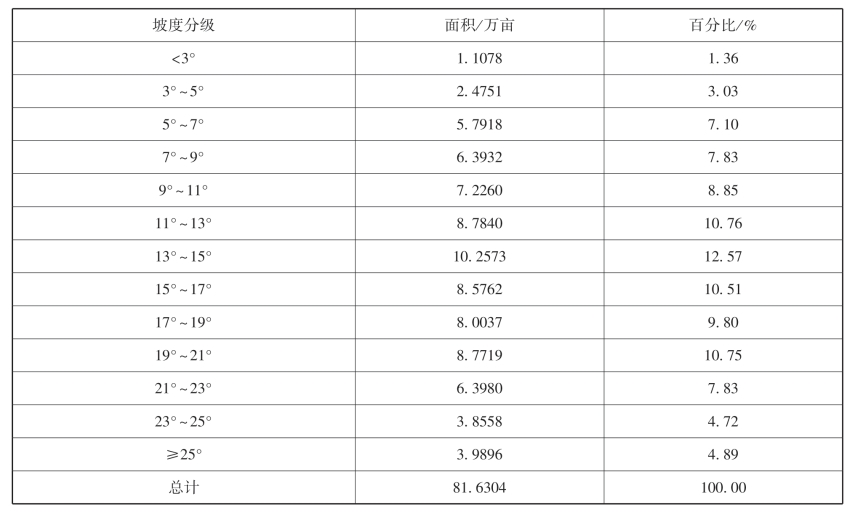 坡度范围为0°~41°,本级地主要分布在7°~23°,面积有64.4103万亩,占本级耕地的78.90%。