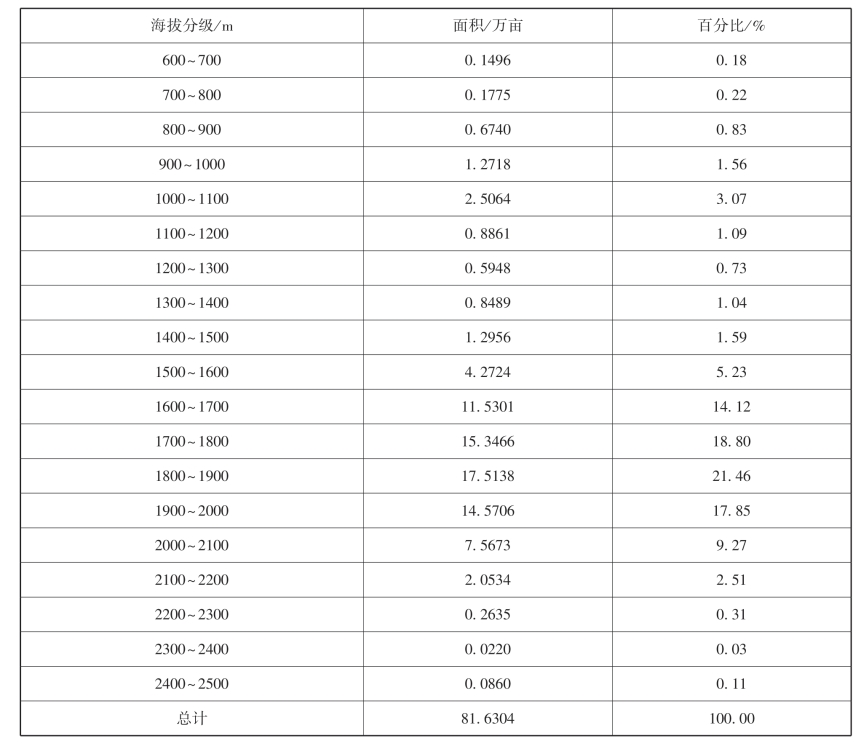 海拔范围为600~2500m,本级地主要分布在1500~2100m,面积有70.8008万亩,占本级耕地的86.73%。