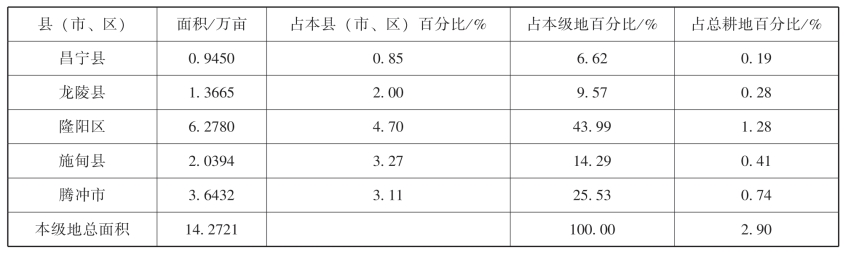 十级耕地:隆阳区面积有6.2780万亩,占本级地的43.99%,占本区的4.70%。