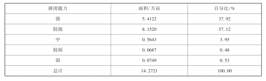 排涝能力以“较强”为主,面积有8.1520万亩,占本级耕地的57.12%。