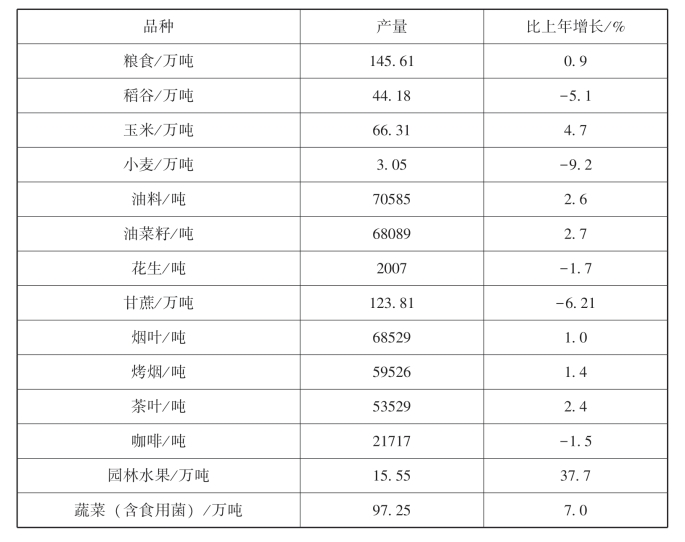 表7-1 保山市粮食和特色农业产量情况表