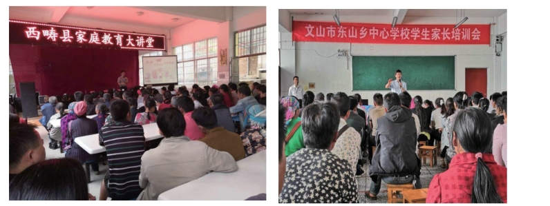 各学校通过家长学校向学生家长传授生涯发展教育方面的理论和知识、教育技能技巧,文山州家庭教育协会本年度在80所学校举办相关的讲座,2万余人次参加学习。