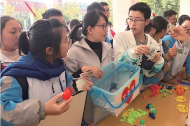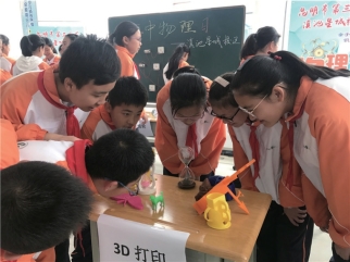 在“昆三中物理科普日”活动中,实验室主持人尚雪丽老师带领滇池星城校区的学生们一起走进3D打印的世界,同学们都纷纷被神奇的3D打印作品吸引。