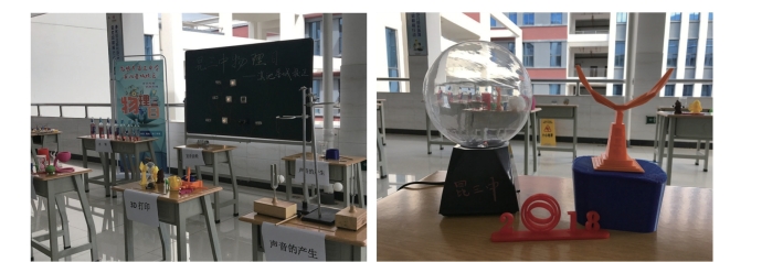 随着下课铃声一响,各年级的学生们立刻欢快地跑到活动场地,看着琳琅满目的实验设备,眼睛里放出好奇的光芒,纷纷来到各个实验桌前,认真研究了起来。音叉的共振、辉光球、飞机升力演示仪等,每一个实验都趣味十足。