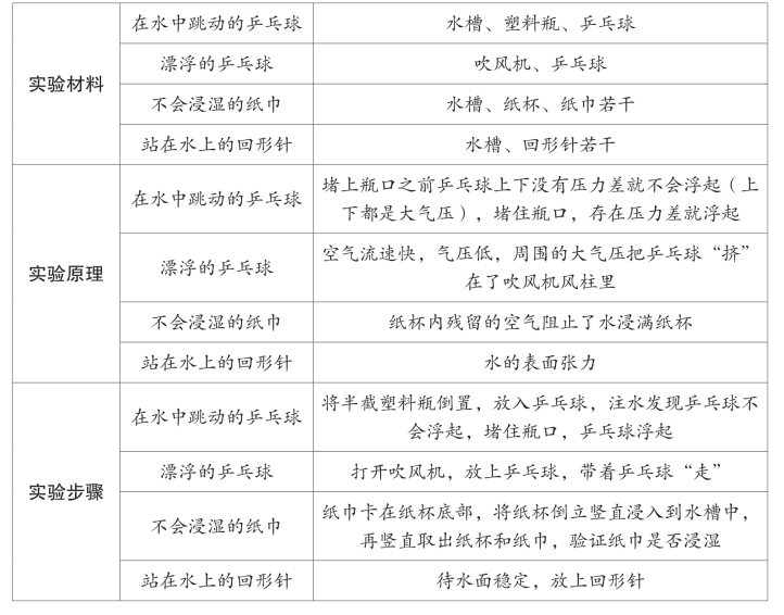 漂浮的乒乓球、不会浸湿的纸巾