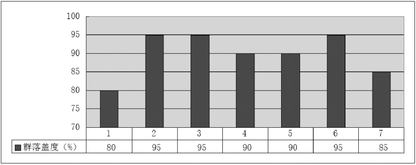 由图可知,西康玉兰的群落盖度区间[80,95],最小值1号植株,最大值为2号、3号和6号植株。
