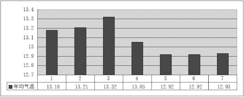 2.年均气温:经调查统计制图如下(见图2)。(年均气温单位为℃,下同)
