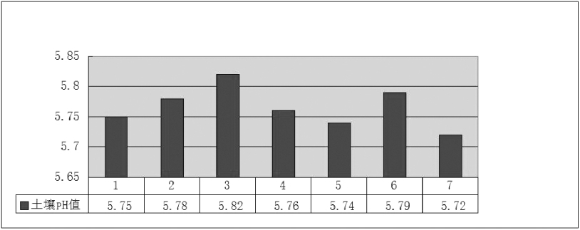 6.土壤pH值:经调查统计制图如下(见图5)。
