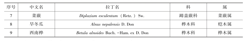 由表可知,伯乐树生活的群落植物分属6科9属9种。