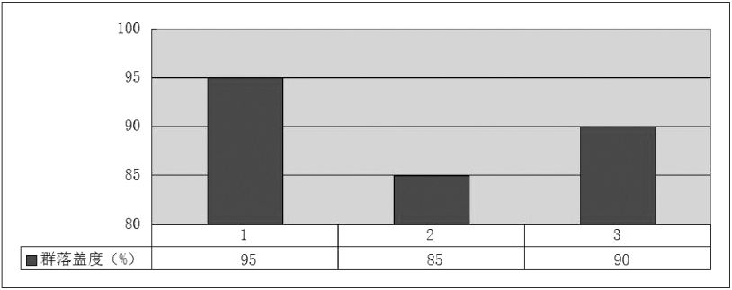 由图可知,伯乐树的群落盖度区间[85,95],最小值为2号植株,最大值为1号植株。