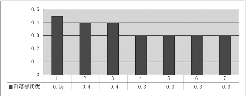 由图可知,元江苏铁的群落郁闭度区间为[0.30,0.45],最小值为4号、5号、6号和7号植株,最大值为1号植株。
