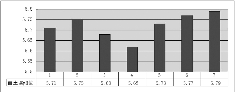 由图可知,元江苏铁的土壤pH值区间[5.62,5.79],最小值为4号植株,最大值为7号植株。