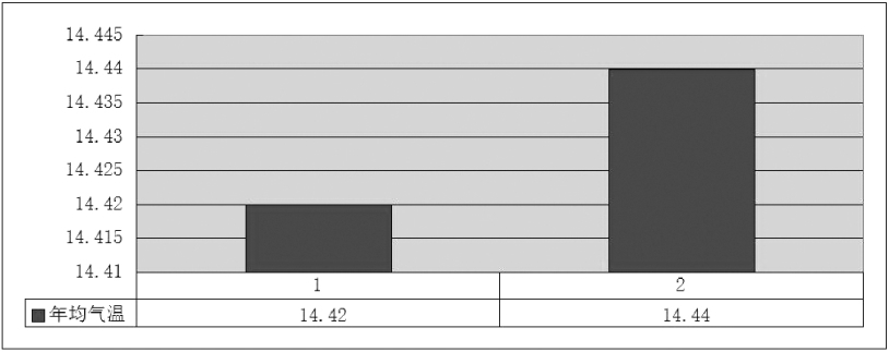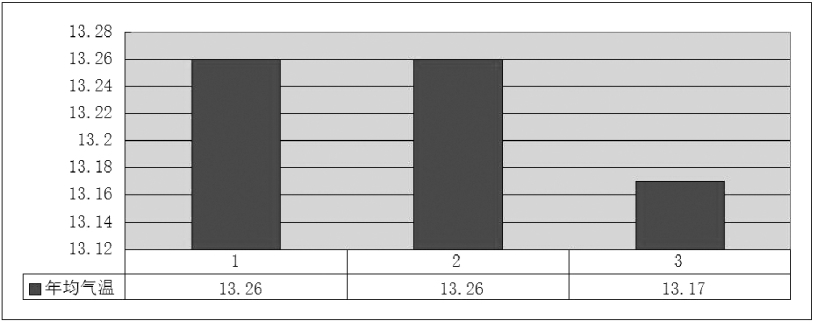 由图可知,水青树年均气温区间[13.17,13.26],最小值为3号植株,最大值为1号植株。