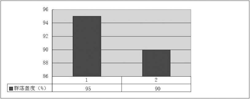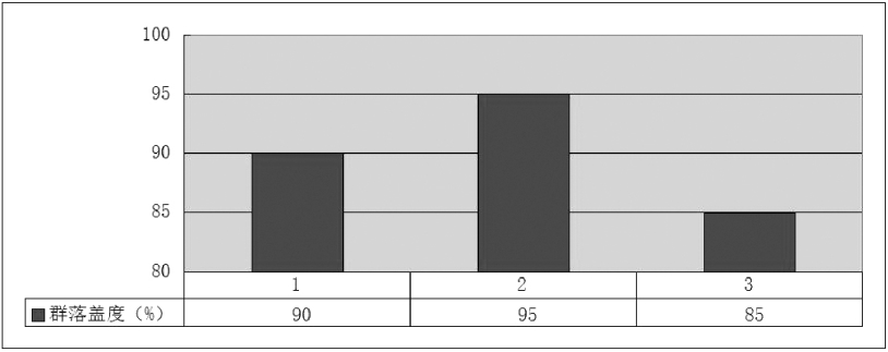由图可知,水青树群落郁闭度区间[85,95],最小值为3号植株,最大值为2号植株。