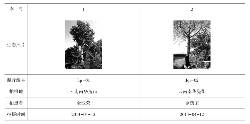 ⑨坡位:银杏的坡位有2类,1号植株为下坡位,占50%,2号植株为平地,占50%。