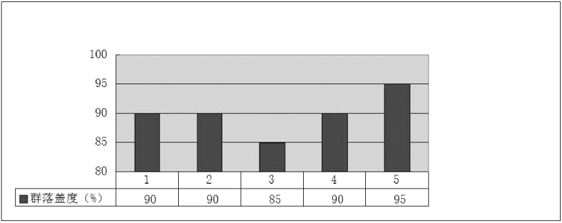 由图可知,黄杉的群落盖度区间[85,95],最小值为3号样方,最大值为5号样方。