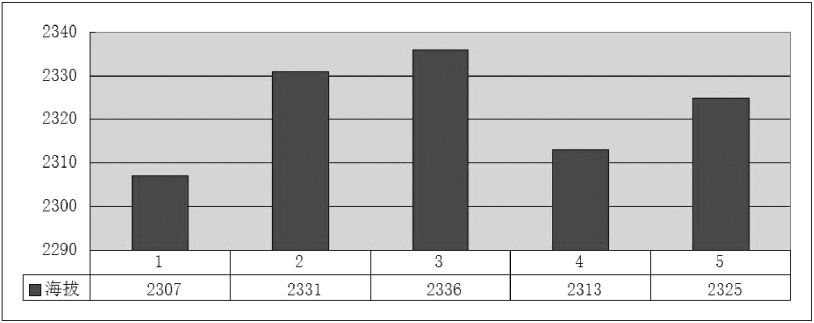由图可知,黄杉的海拔区间[2307,2336],最小值为1号样方,最大值为3号样方,属中山地貌。