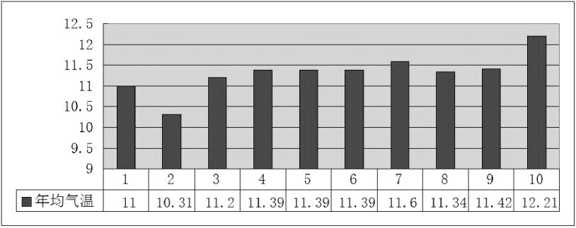 由图可知,喜马拉雅红豆杉的年均气温区间[10.31,12.21],最小值为2号样方,最大值为10号样方。