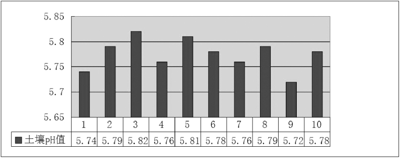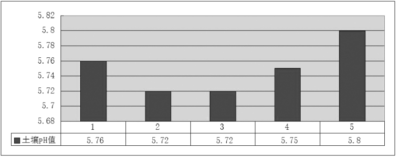 由图可知,喜马拉雅红豆杉土壤pH值区间[5.72,5.80],最小值为2号和3号样方,最大值为5号样方。