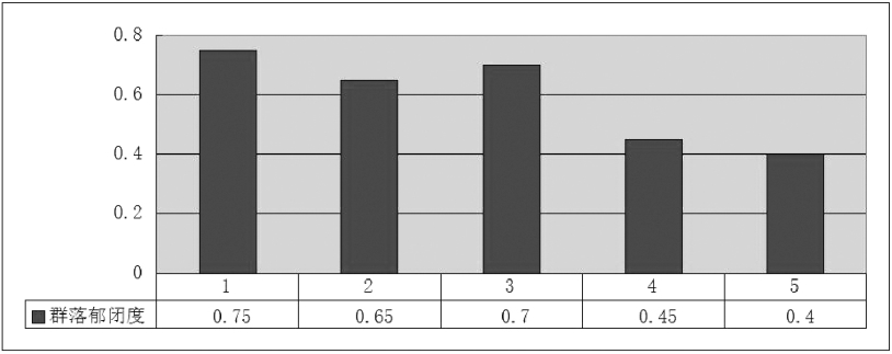 由图可知,喜马拉雅红豆杉群落郁闭度区间[0.40,0.75],最小值为5号样方,最大值为1号样方。