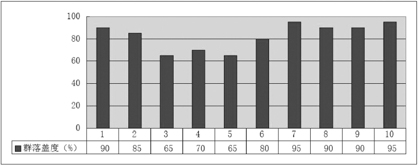 由图可知,喜马拉雅红豆杉的群落盖度区间[65,95],最小值为3号和5号样方,最大值为7号和10号样方。