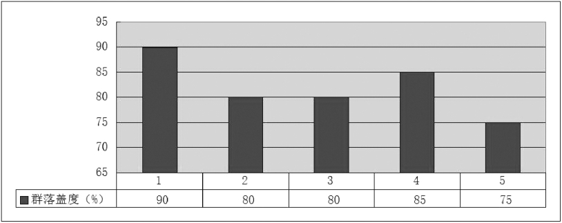 由图可知,喜马拉雅红豆杉群落盖度区间[75,90],最小值为5号样方,最大值为1号样方。