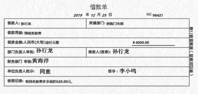 2.1月5日,销售门市部经理孙行龙报销差旅费,交通补贴80元/天,伙食补助100元/天,填写差旅费报销单。