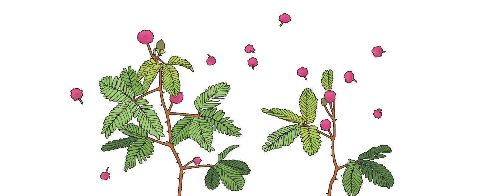 含羞草的名字中有个“羞”字,这是因为,只要轻轻碰一下它们的叶子,甚至是一阵风吹来,它们都会迅速地合上叶片,然后低垂下去,好像害羞了一样。不过,它们可没有人类的那种“害羞”的感觉,它们这么做是在保护自己呢!