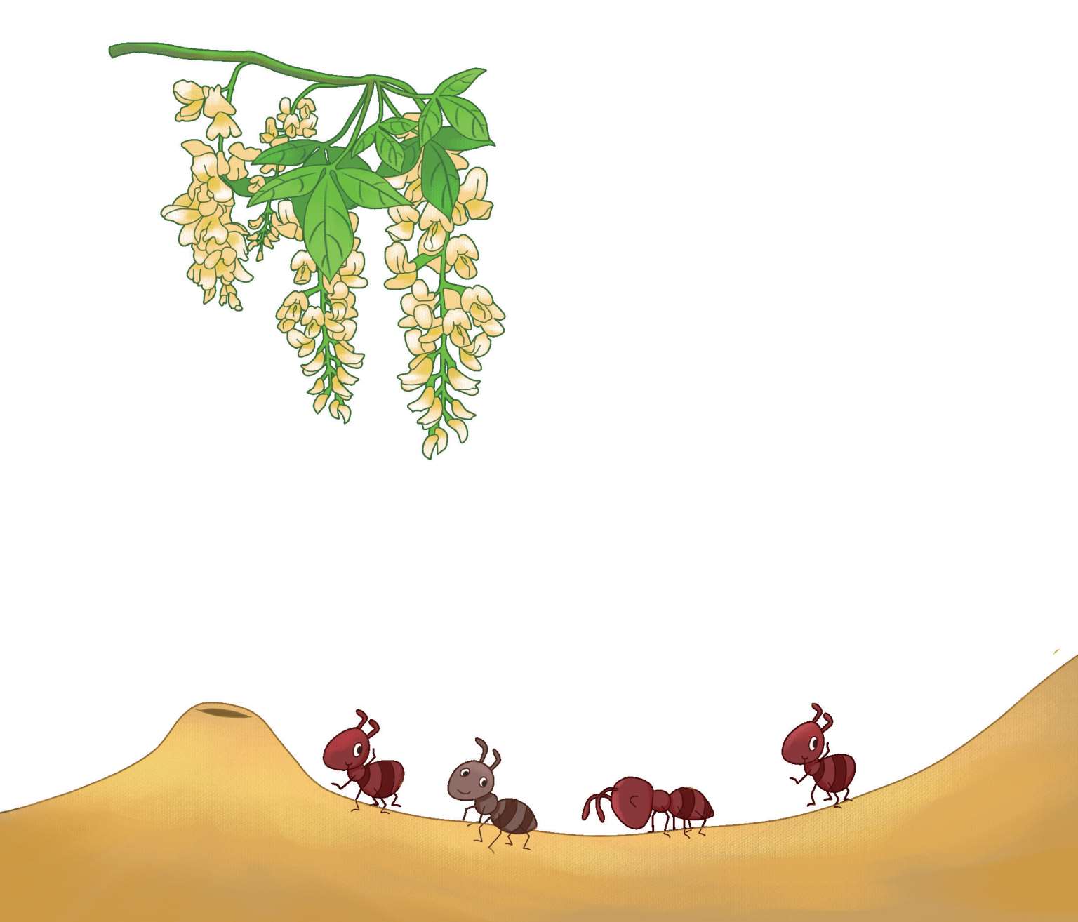 刺槐给蚂蚁提供居住的地方,还把自己的花蜜送给蚂蚁当食物。为了回报刺槐,也为了保卫自己的“家园”,蚂蚁勇敢地承担起了保卫刺槐的工作。一旦有动物来啃食刺槐的叶子,蚂蚁就会集体出动,将“侵略者”击退;有些植物想依附到刺槐的身上,吸取刺槐的营养,蚂蚁们也会勇敢地站出来,把这些植物啃食一空。