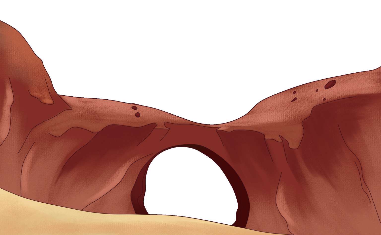 天然拱是自然形成的一种地质现象,就像在岩石上掏出一个洞似的。天然拱的形成与压力有关,所以又叫压力拱。