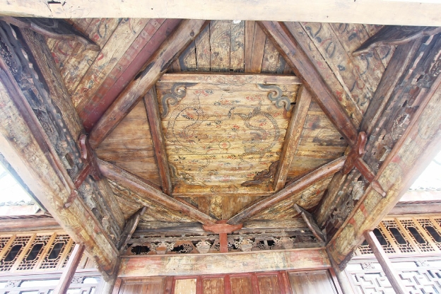 C-1-21 古戏台的藻井方形浅斗拱及其上的彩绘云龙图案