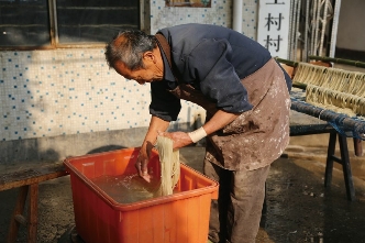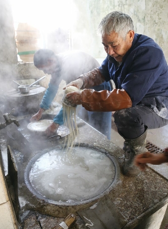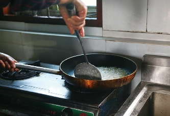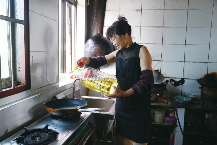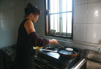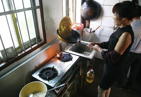D-1-1 阿婆饼制作技艺:将油倒入烧得七八分热的锅中