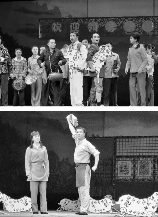 与传统戏曲相映成辉的,是近年来活跃在舞台上的一批现代戏,这些剧目或贴近现实和广大人民群众生活、或是革命历史题材的“红色经典”。在2010年“九艺节”上,京剧《生活秀》《飘逸的红纱巾》、秦腔《大树西迁》、评剧《宰相胡同》、河北梆子《女人九香》、陇剧《苦乐村官》、琼剧《下南洋》、豫剧《村官李天成》、花灯戏《梭罗寨》、粤剧《刑场上的婚礼》、黄梅戏《风雨丽人行》等近年来较有影响的现代戏集体亮相,在全部33台戏曲作品中所占比例之高令人惊叹,成为了毋庸置疑的亮点。以现代意识切入现代、现实题材,从中体现出创作者对人生、对社会、对个体生命和精神的人文关怀,这正是现代戏的优长和力量所在。