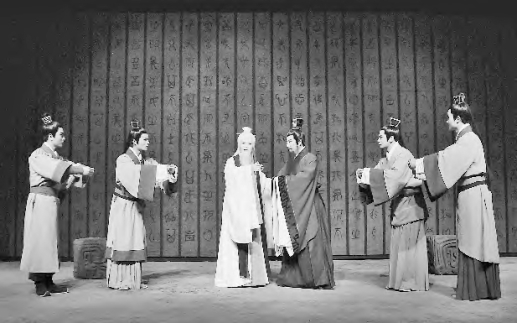 当然此戏还有需进一步打磨与斟酌之处,对千百年来老子意象所积淀出的“玄妙”之境表现还不够到位。如老子与普通民众的关系究竟该如何写?老子与普通民众的关系毕竟是表现老子“玄妙”之境的一个节点,现在的舞台呈现比如群众赠牛、老子最后杀牛为群众治病,所展现的老子是很有亲和力,但这样一来感觉老子形象的现代意识过强,而剧作者对作为道家创始人所给人的“玄妙”意象则显想象不足。从这个角度说,此戏的平民意识很强但精英意识不足,而表现一个哲人,必要的精英意识还是应该有的。这样,才符合千百年来人们心中的老子形象。另外,最后老子在函谷关写《道德经》的时候,尹喜与众人都说“笔砚伺候”,老子时代还不用后来的“笔砚”,用的是“刀笔”刻写在竹简上的,应该说“刀笔伺候”才对。